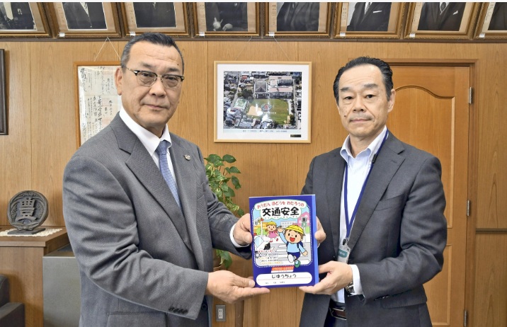 自由帳寄贈 兵庫県 公開日: 2026.04.15 都道府県: 兵庫県 2026年4月15日付 読売新聞大阪朝刊・兵但馬 今春小学校に入学した新1年生の交通安全に役立ててもらおうと、兵庫県豊岡市の読売新聞販売店「YC豊岡中央」が、旧豊岡市内(港地区を除く)の8小学校に「交通安全じゆうちょう(自由帳)」計約280冊を贈った。 自由帳(B5判無地)は、手を上げて横断歩道を渡る児童のイラストが表紙で、信号機の赤青黄色の意味を「とまれ」「すすめ」「すすんではいけません」と説明している。裏表紙には「止まれ」や「歩行者横断禁止」など、通学路でよく見る道路標識が印刷されている。 14日にはYC豊岡中央の中川貴司代表が市立豊岡小を訪れ、内海忠裕校長に自由帳を手渡した。今年度は35人が入学しており、内海校長は「学校が市街地にあり、通行車両も多い。出合い頭の事故が心配なので、自由帳を見て『止まれ』の標識などを覚えてもらえれば」と話した。 内海校長(右)に自由帳を手渡す中川代表(豊岡市立豊岡小で) 前の記事 一覧へ戻る 記事の絞り込み 都道府県 全国 北海道 青森県 宮城県 秋田県 山形県 福島県 東京都 茨城県 栃木県 群馬県 埼玉県 千葉県 神奈川県 新潟県 長野県 山梨県 岐阜県 静岡県 富山県 石川県 福井県 三重県 滋賀県 京都府 大阪府 兵庫県 奈良県 和歌山県 徳島県 香川県 愛媛県 高知県 島根県 鳥取県 岡山県 広島県 山口県 福岡県 熊本県 大分県 宮崎県 年の指定 2026年 2025年 2024年 2023年 2022年