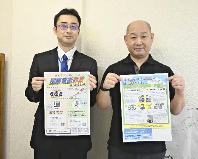 国際電話詐欺 注意して YCと県警チラシ きょう朝刊に 和歌山県 公開日: 2025.10.15 都道府県: 和歌山県 2025年10月11日付 読売新聞大阪朝刊・統和歌 和歌山県内の読売新聞販売店(YC)でつくる和歌山読売防犯協力会(伊藤泰宏会長)は、県警と共同で防犯チラシ約6万3000枚を作った。全国読売防犯デーの11日の朝刊に折り込んでいる。 犯罪のない社会を目指す「全国地域安全運動」(11~20日)に合わせ、企画した。 チラシでは、特殊詐欺などの被害に遭わないために「+(国番号)から始まる国際電話番号に注意」するよう呼びかけ、固定電話への国際電話の着信を拒否できるサービスを提供する「国際電話不取扱受付センター」(0120・210・364)も紹介。YCの防犯パトロールなどもイラストで説明する。 配布を前に、和歌山市のYC和歌山中央を訪ねた県警生活安全企画課の岡山貴美憲・犯罪抑止総合対策室長は、特殊詐欺の被害額が9月25日時点で前年同期より約4億円多い約7億4000万円となっていることに触れ、「多くの家庭に注意喚起できることはありがたい」と語った。伊藤会長は「折り込みチラシは、新聞販売店ならではの発信だ。今後もチラシを生かして、様々な地域貢献をしたい」と話している。 写真=折り込みチラシを手にする岡山室長(左)と伊藤会長(和歌山市で) 前の記事 一覧へ戻る 次の記事 記事の絞り込み 都道府県 全国 北海道 青森県 宮城県 秋田県 山形県 福島県 東京都 茨城県 栃木県 群馬県 埼玉県 千葉県 神奈川県 新潟県 長野県 山梨県 岐阜県 静岡県 富山県 石川県 福井県 三重県 滋賀県 京都府 大阪府 兵庫県 奈良県 和歌山県 徳島県 香川県 愛媛県 高知県 島根県 鳥取県 岡山県 広島県 山口県 福岡県 熊本県 大分県 宮崎県 年の指定 2025年 2024年 2023年 2022年