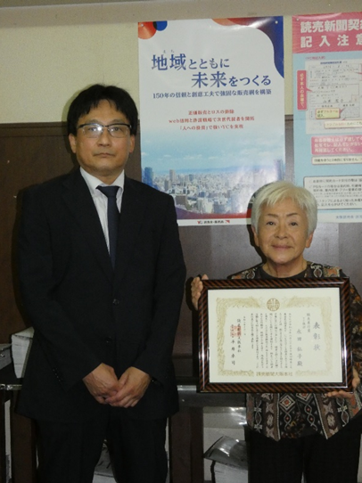 新着記事一覧 2025.10.21 大阪府 集金中、倒れていた高齢男性を救助 永田さん(YC諏訪スタッフ)に販売善行 2025.03.27 神奈川県 YCの配達員人命救助貢献 川崎市が感謝状 神奈川県 2025.02.28 静岡県 ポストに異変高齢者救助 磐田市 YC配達員に感謝状 静岡県 2025.02.25 富山県 YC所長に感謝状 魚津署 高齢者に声かけ保護 富山県 2025.02.21 高知県 YC代表 機転を働かせ親族に連絡 高齢男性の命を救う 2025.02.04 千葉県 うずくまる高齢男性をYCスタッフの連携で救助 2024.12.25 兵庫県 朝刊配達中路上で倒れている高齢男性を発見救助 2024.12.17 兵庫県 人命を救助、読売センター但馬江原の吉田代表に販売善行賞 2024.12.02 群馬県 [優しさ・勇気・機転]行方不明の高齢者保護 YCスタッフに感謝状 群馬県 2024.11.01 三重県 新聞配達中 高齢者救う 2024.08.29 千葉県 YC御宿からのパトロール報告(8月25日) 記事の絞り込み 都道府県 群馬県 千葉県 神奈川県 静岡県 富山県 三重県 大阪府 兵庫県 高知県 年の指定 2025年 2024年